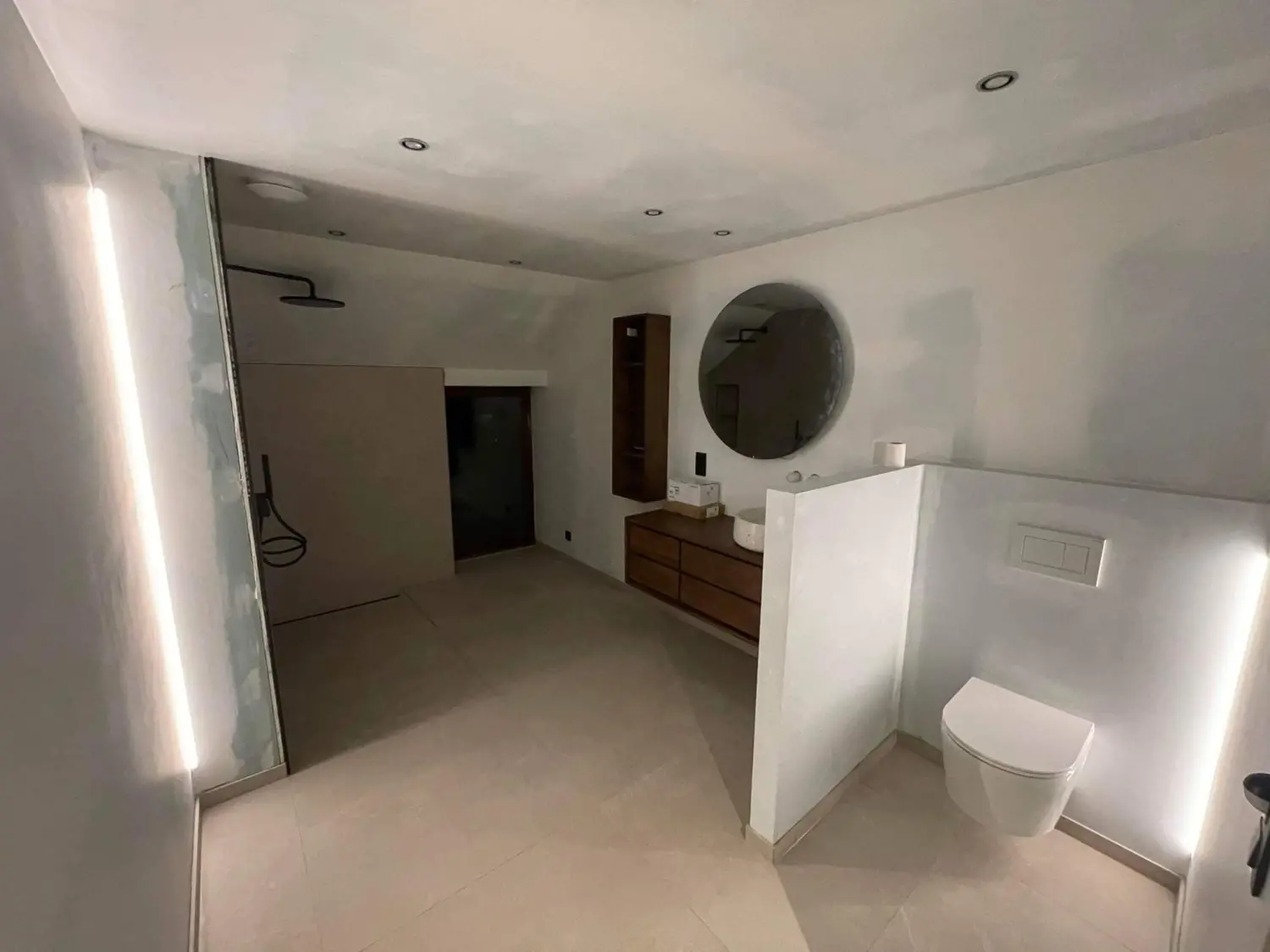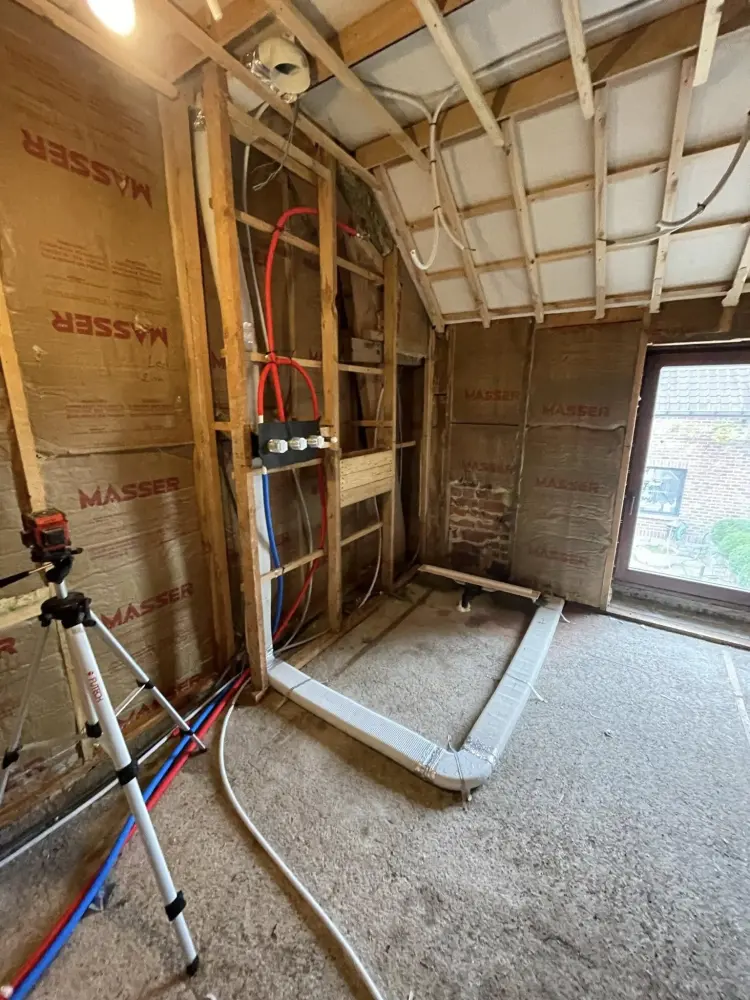 Rénovation de salle de bain à Bever. Comprend l’éclairage LED, le chauffage au sol, l’isolation et la finition avec des carreaux. Le chauffage choisi est un plancher chauffant électrique avec résistances de la marque Schlüter.