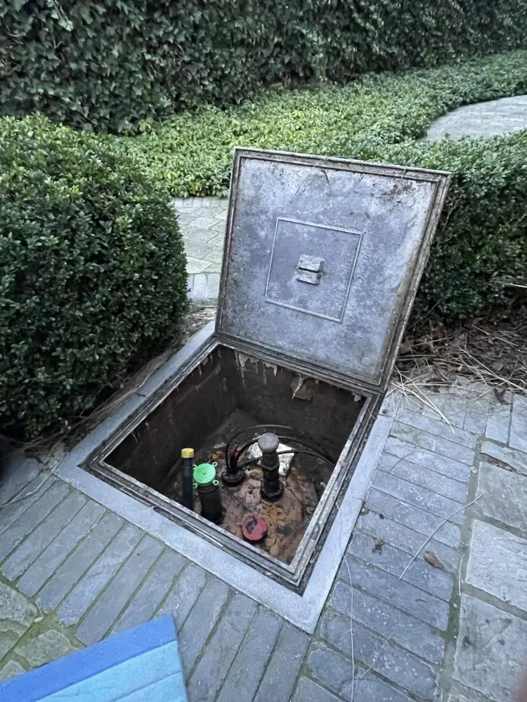 Keuring van een ondergrondse stookolietank. Groene dop = geslaagd.
